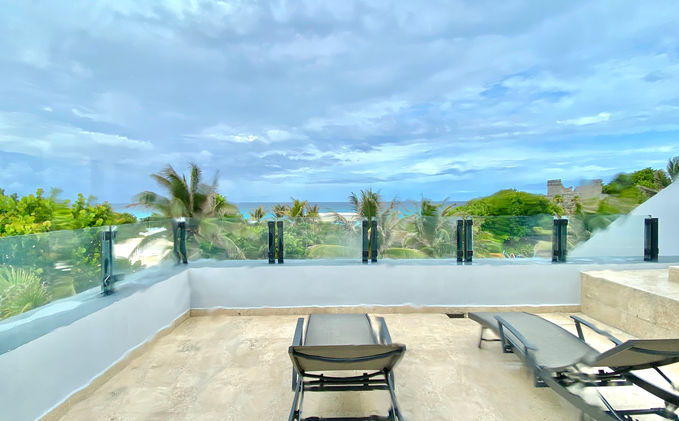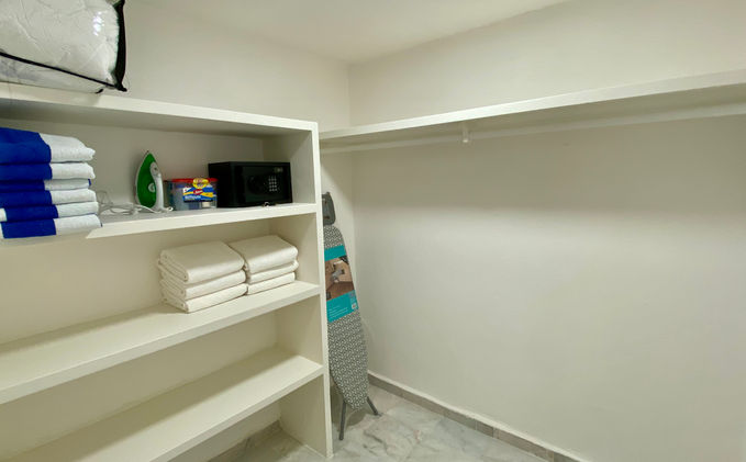 Apartamento privado de 100 m2 no terceiro andar com 2 elevadores. Tem um amplo terraço com uma pequena piscina e VISTA MAR. O apartamento possui um quarto com duas camas de casal. Pode ser instalado um colchão insuflável duplo na zona de jantar e de estar (mediante pedido). Possui casa de banho completa com duche.